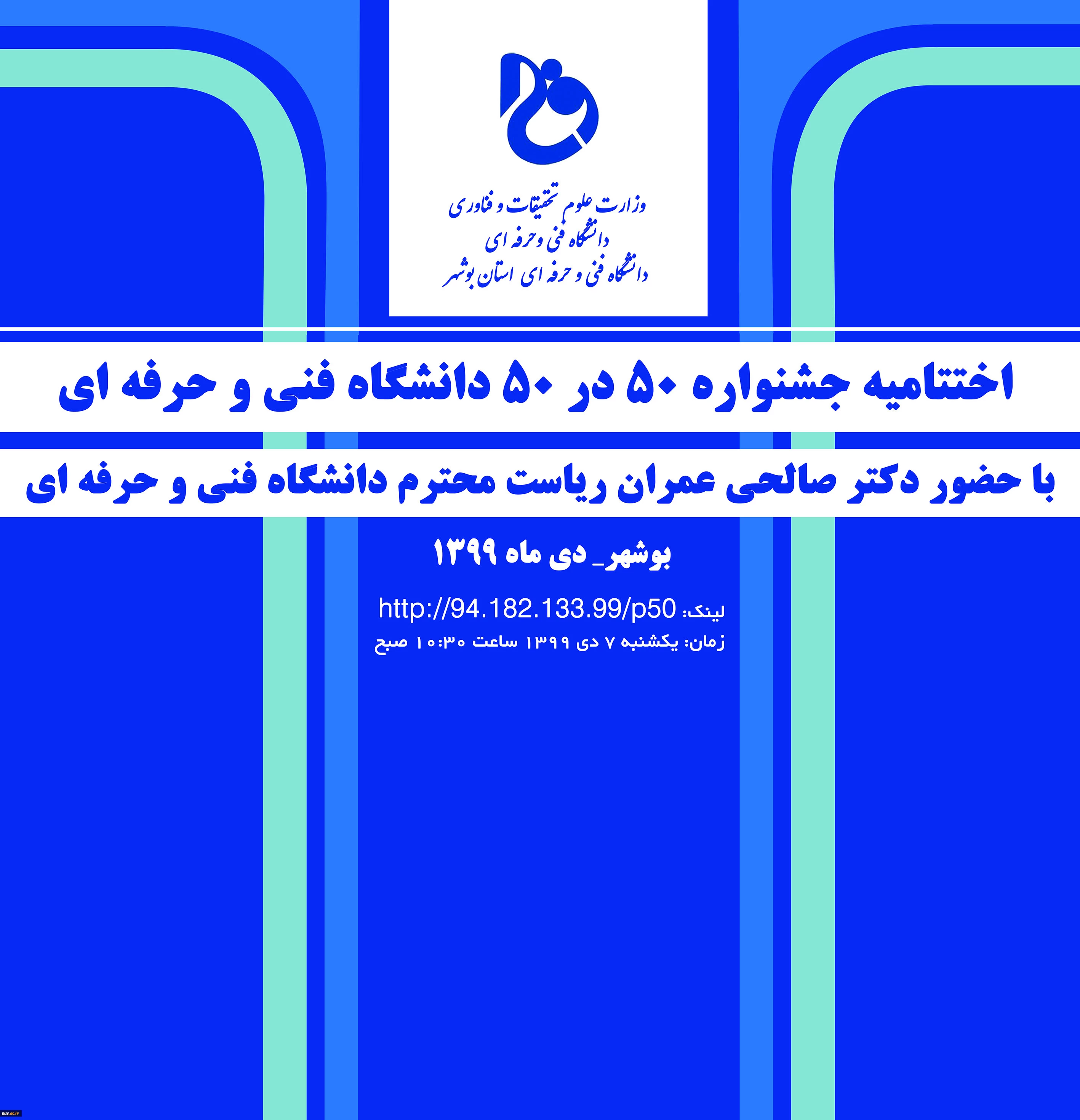 امتیاز دهید : معاون فرهنگی و دانشجویی دانشگاه فنی و حرفه ای استان بوشهر اختتامیه جشنواره پیاده روی 50 در 50، 7 دی 1399 در بوشهر برگزار می شود 2 سهشنبه 2 دی 1399 ساعت 14:16
