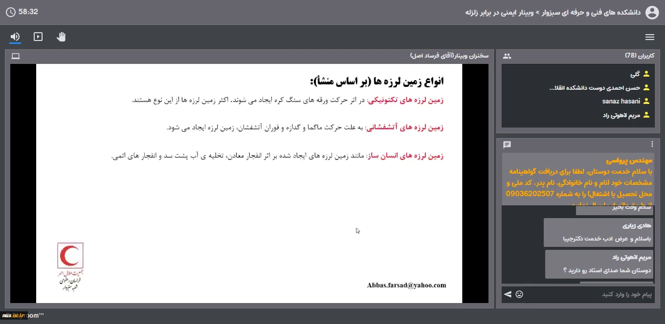 امتیاز دهید : برگزاری وبینار ایمنی در برابر زلزله در دانشکده های فنی و حرفه ای سبزوار 8 شنبه 6 دی 1399 ساعت 18:13