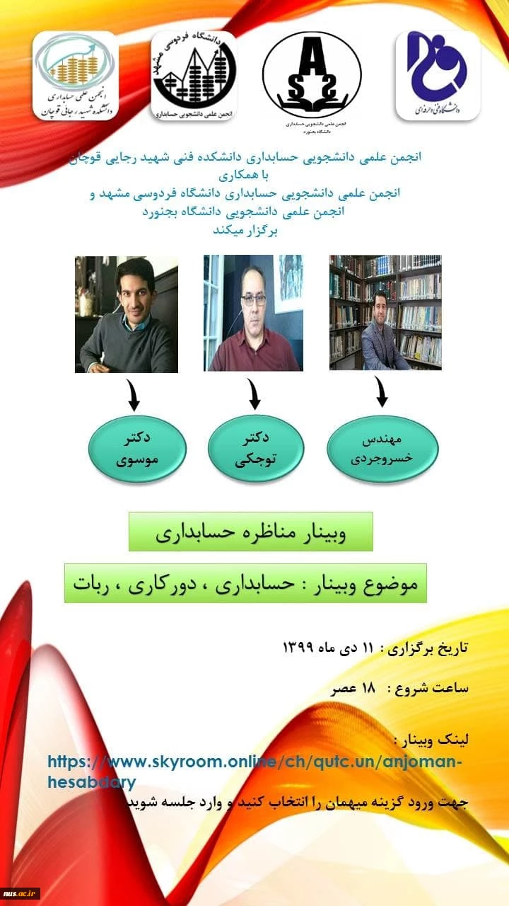 امتیاز دهید : وبینار با موضوع حسابداری ،دورکاری،ربات بصورت مجازی با همکاری دانشگاه فردوس مشهدو انجمن علمی دانشگاه بجنوردبرگزار شد 2 شنبه 13 دی 1399 ساعت 11:19
