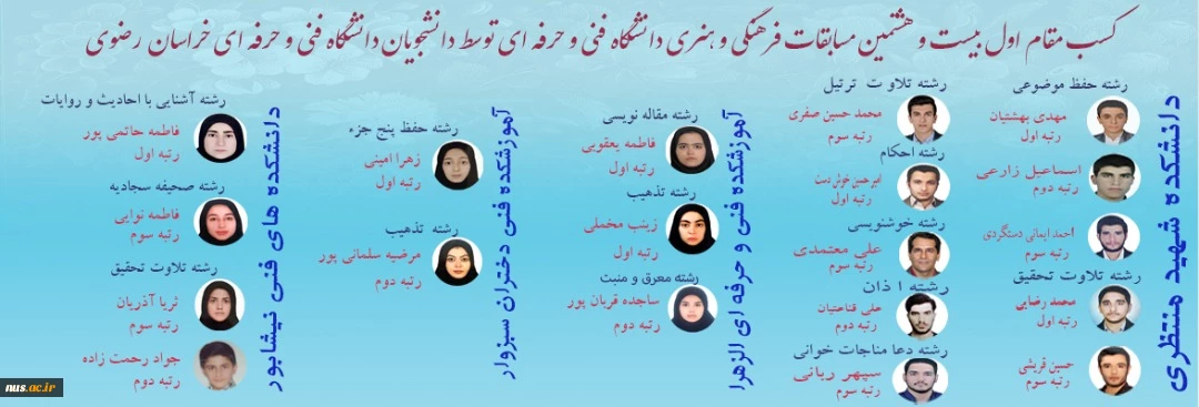 امتیاز دهید : پیام تبریک مسئول نهاد نمایندگی مقام معظم رهبری در دانشگاه فنی و حرفهای خراسان رضوی به مناسبت موفقیت دانشگاه فنی و حرفه ای استان خراسان رضوی در جشنواره فرهنگی و هنری قرآن و عترت کشور 2 سهشنبه 30 دی 1399 ساعت 12:05