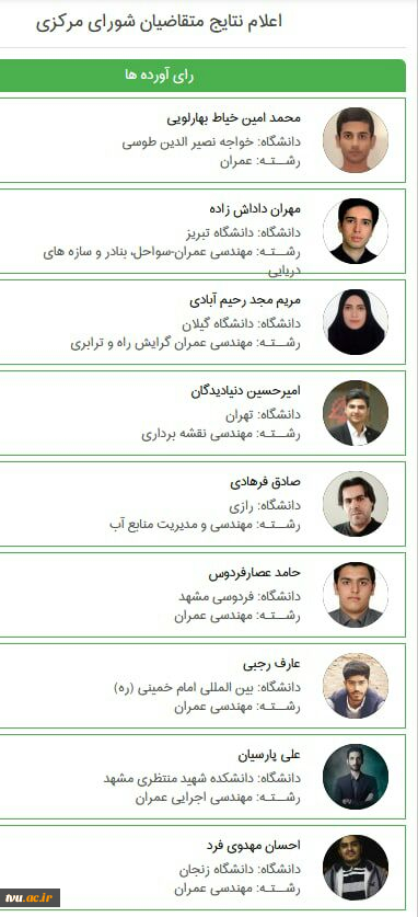 امتیاز دهید : افتخار دیگر برای دانشگاه فنی و حرفه ای علی پارسیان دانشجوی دانشکده فنی شهیدمنتظری ؛ عضو شورای مرکزی اتحادیه انجمن های علمی عمران دانشگاه های وزارت علوم شد. 2 یکشنبه 5 بهمن 1399 ساعت 11:31