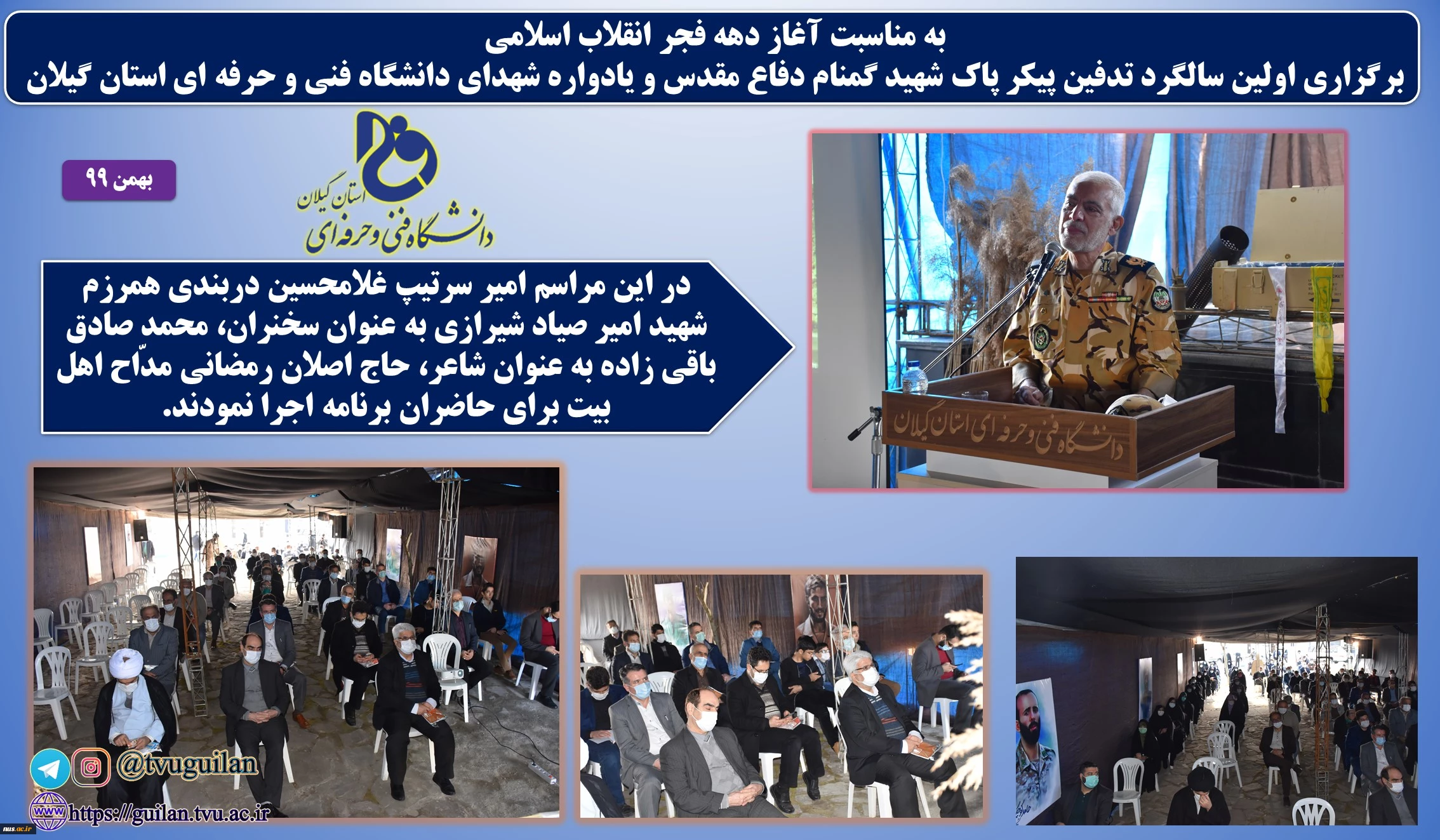 امتیاز دهید : به مناسبت آغاز دهه فجر انقلاب اسلامی و اولین سالگرد تدفین پیکر پاک شهید گمنام دفاع مقدس و یادواره شهدای دانشگاه فنی و حرفه ای استان گیلان در دانشکده شهید چمران رشت برگزار شد. 2 دوشنبه 13 بهمن 1399 ساعت 9:31