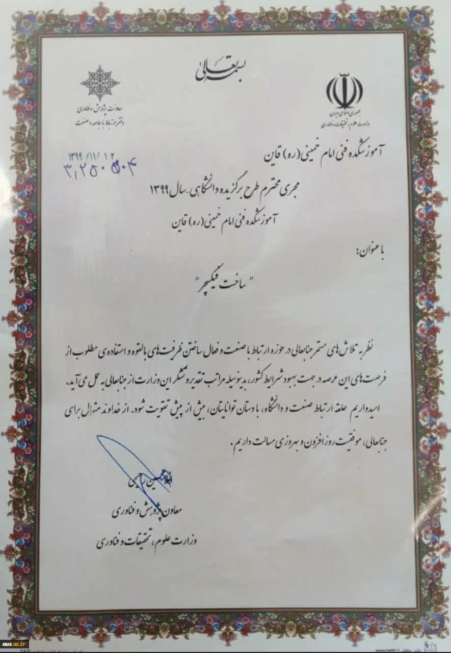 احراز رتبه های برگزیده پژوهشی دانشکده فنی و حرفه ای امام خمینی (ره) قاین ( خراسان جنوبی ) در سطح کشور 2