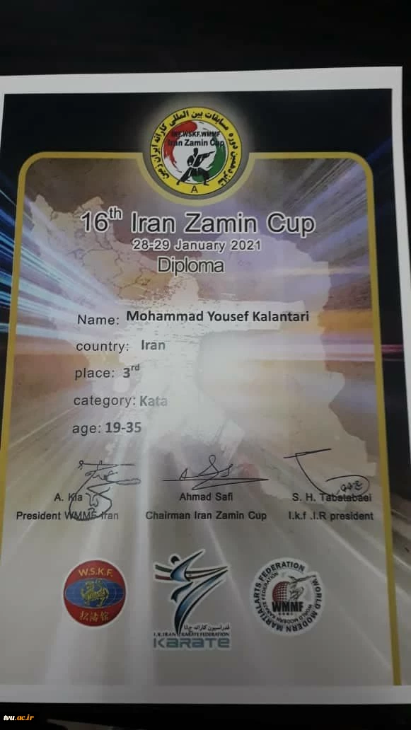 رئیس دانشگاه فنی و حرفه ای استان مازندران کسب مقام سوم مسابقات بین المللی کاراته توسط دانشجوی دانشکده فنی امام محمدباقر(ع) ساری را تبریک گفت. 2