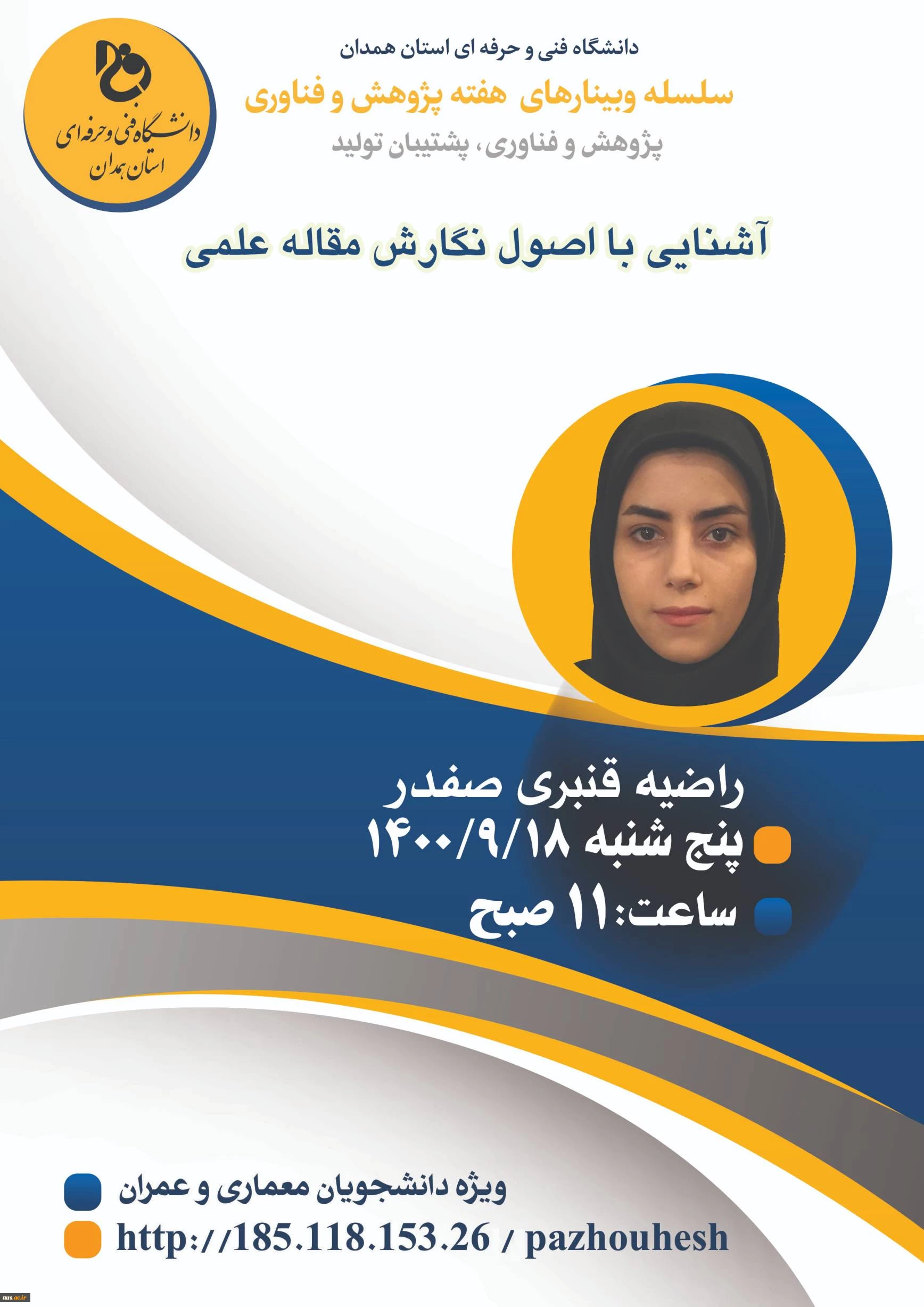 وبینارهای دانشگاه فنی و حرفه ای استان همدان به مناسبت هفته پژوهش و فناوری