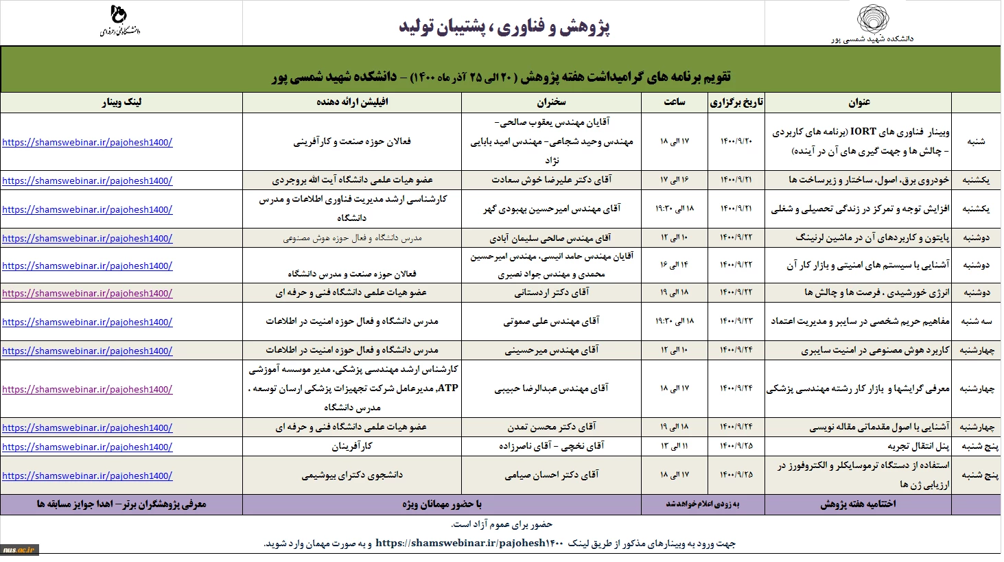 امتیاز دهید : وبینارهای دانشگاه فنی و حرفه ای استان تهران _ آموزشکده فنی شمسی پور به مناسبت هفته پژوهش و فناوری دوشنبه 22 آذر 1400 ساعت 11:07