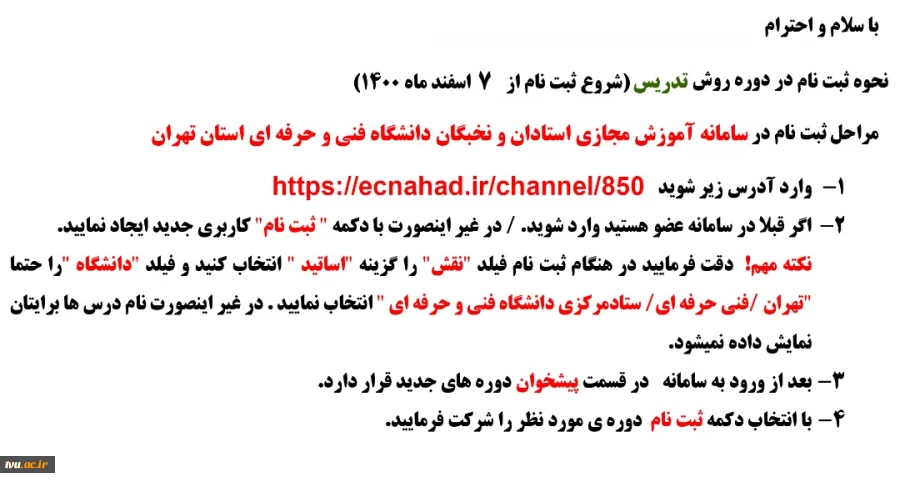 ثبت نام دوره های توانمندسازی و بالندگی اساتید در زمستان 1400 2