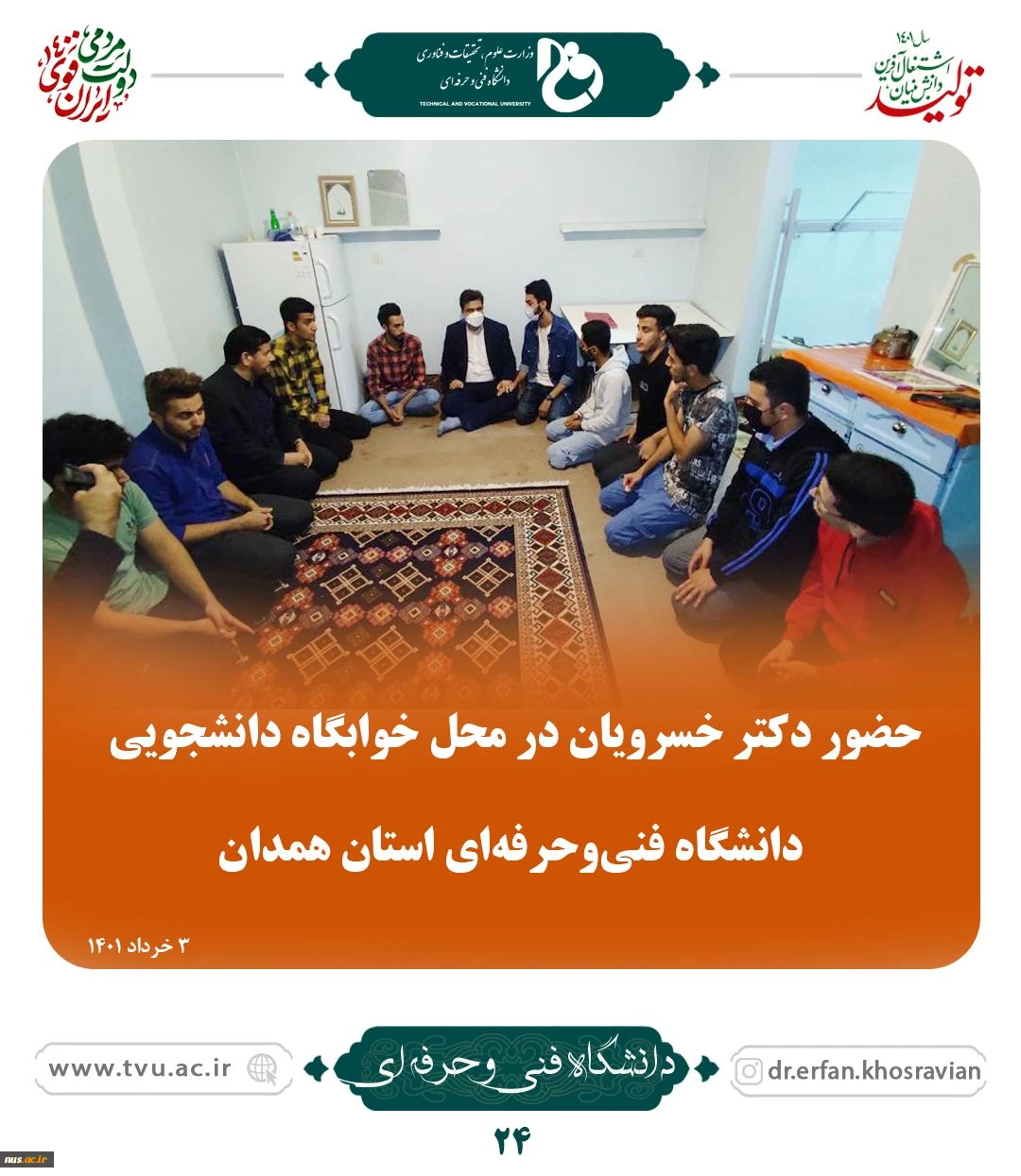امتیاز دهید : دومین ملاقات عمومی دکتر خسرویان با اساتید، کارکنان و دانشجویان دانشگاه فنی و حرفه ای استان همدان 32 پنجشنبه 5 خرداد 1401 ساعت 8:31