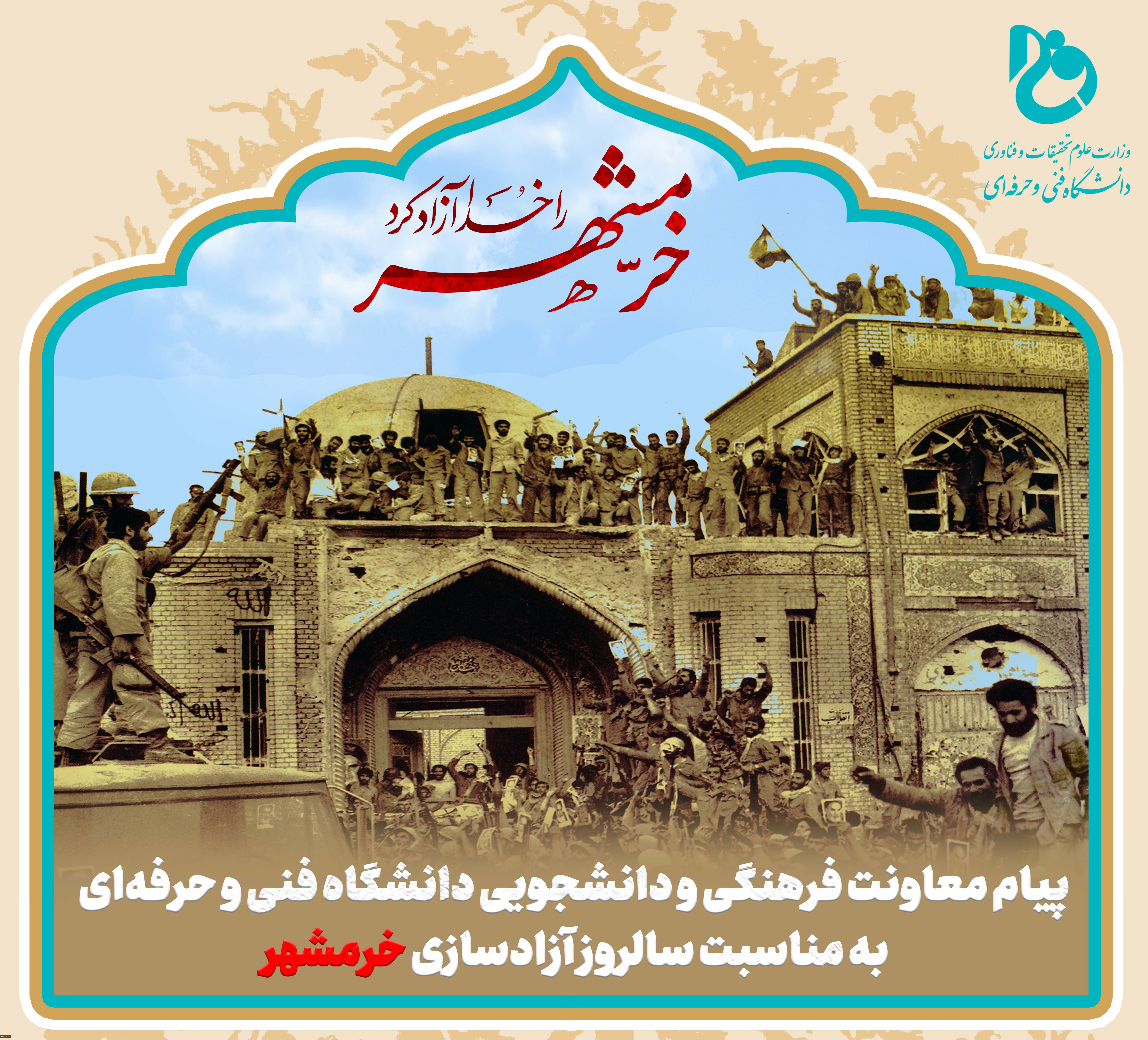 امتیاز دهید : پیام معاونت فرهنگی و دانشجویی دانشگاه فنی و حرفهای به مناسبت سالروز آزادسازی خرمشهر 2 سهشنبه 2 خرداد 1402 ساعت 15:57