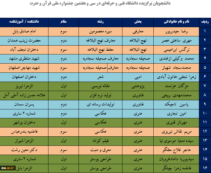 دانشجویان دانشگاه فنی و حرفه‌ای در سی و هفتمین جشنواره قرآن و عترت با کسب رتبه‌های ملی جشنواره بر سکوی افتخار جای گرفتند 2