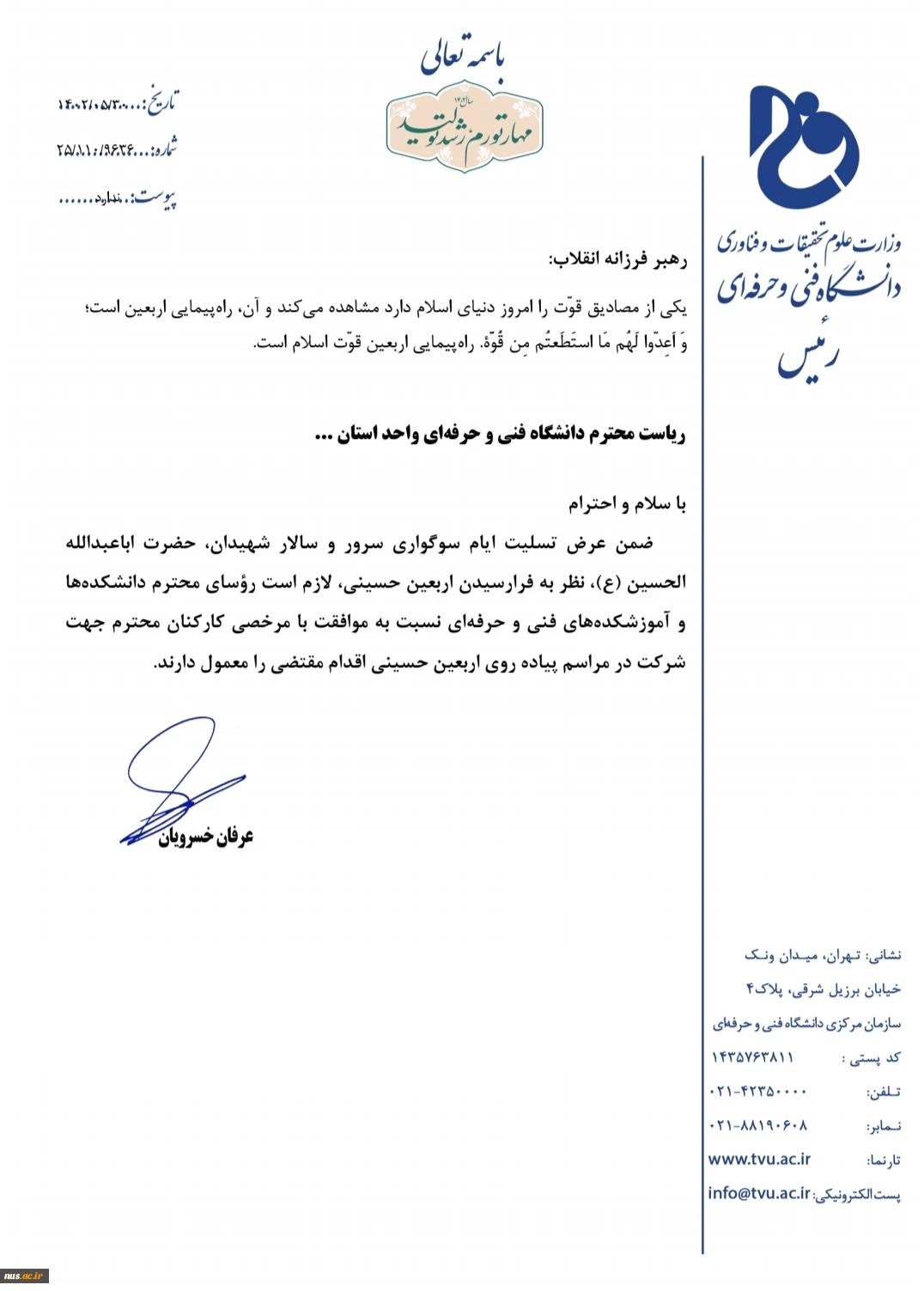 امتیاز دهید : تأکید رئیس دانشگاه فنی و حرفهای در خصوص موافقت رؤسای دانشکدهها و آموزشکدههای تابع با مرخصی کارکنان جهت حضور در مراسم آیینی پیادهروی اربعین 2 چهارشنبه 1 شهریور 1402 ساعت 13:54