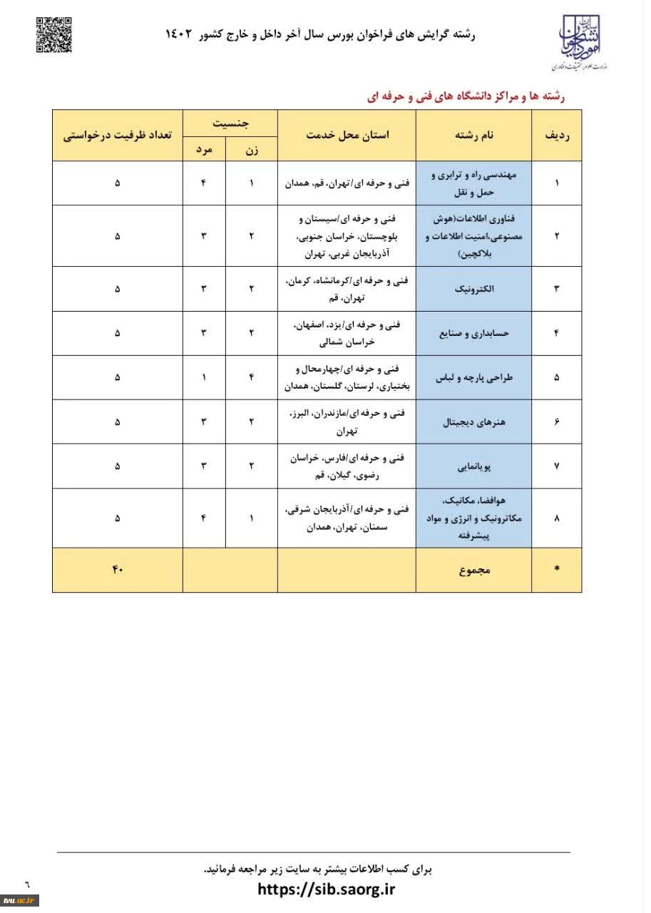 امتیاز دهید : برای نخستینبار در فراخوان بورس سال آخر داخل و خارج کشور (۱۴۰۲) وزارت علوم، تحقیقات و فناوری: اعلام رشتهگرایشها و مراکز دانشگاه فنی و حرفهای 2 چهارشنبه 6 دی 1402 ساعت 12:57