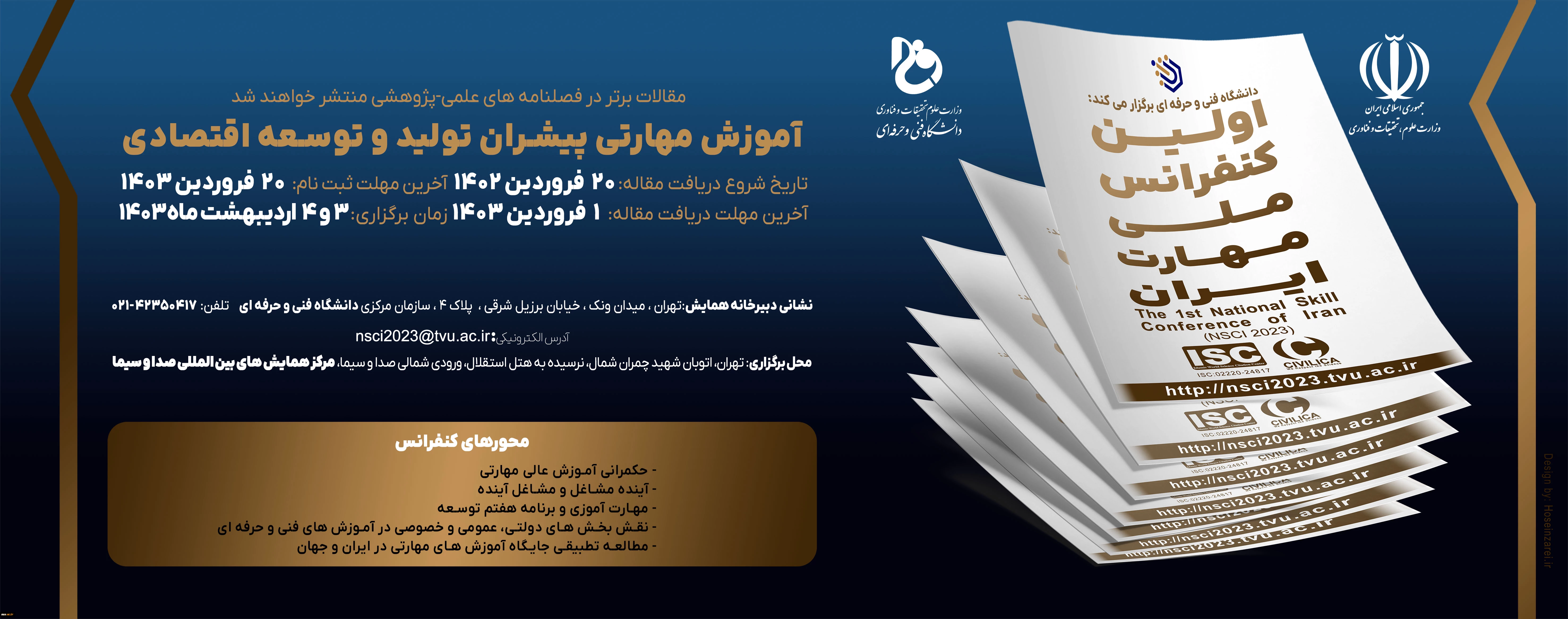 امتیاز دهید : رئیس دانشگاه فنی و حرفهای از برگزاری اولین کنفرانس ملی مهارت ایران در اردیبهشتماه 1403 خبر داد 2 یکشنبه 27 اسفند 1402 ساعت 9:26