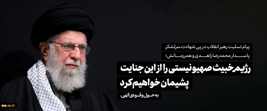 امتیاز دهید : پیام تسلیت رهبر انقلاب در پی شهادت سرلشکر پاسدار محمدرضا زاهدی و همرزمانش 2 سهشنبه 14 فروردین 1403 ساعت 20:33