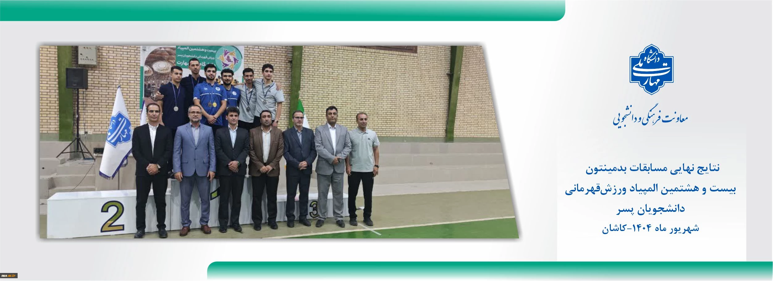 امتیاز دهید : اعلام نتایج مسابقات بدمینتون بیست و هشتمین المپیاد ورزش قهرمانی دانشجویان پسر دانشگاه ملی مهارت 2 جمعه 28 شهریور 1404 ساعت 19:06