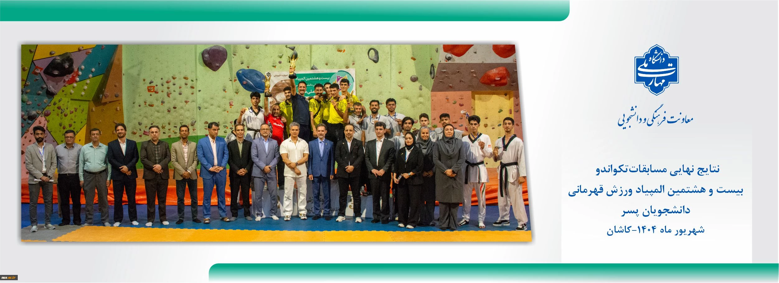 امتیاز دهید : اعلام نتایج مسابقات تکواندو بیست و هشتمین المپیاد ورزش قهرمانی دانشجویان پسر دانشگاه ملی مهارت 11 شنبه 29 شهریور 1404 ساعت 15:05