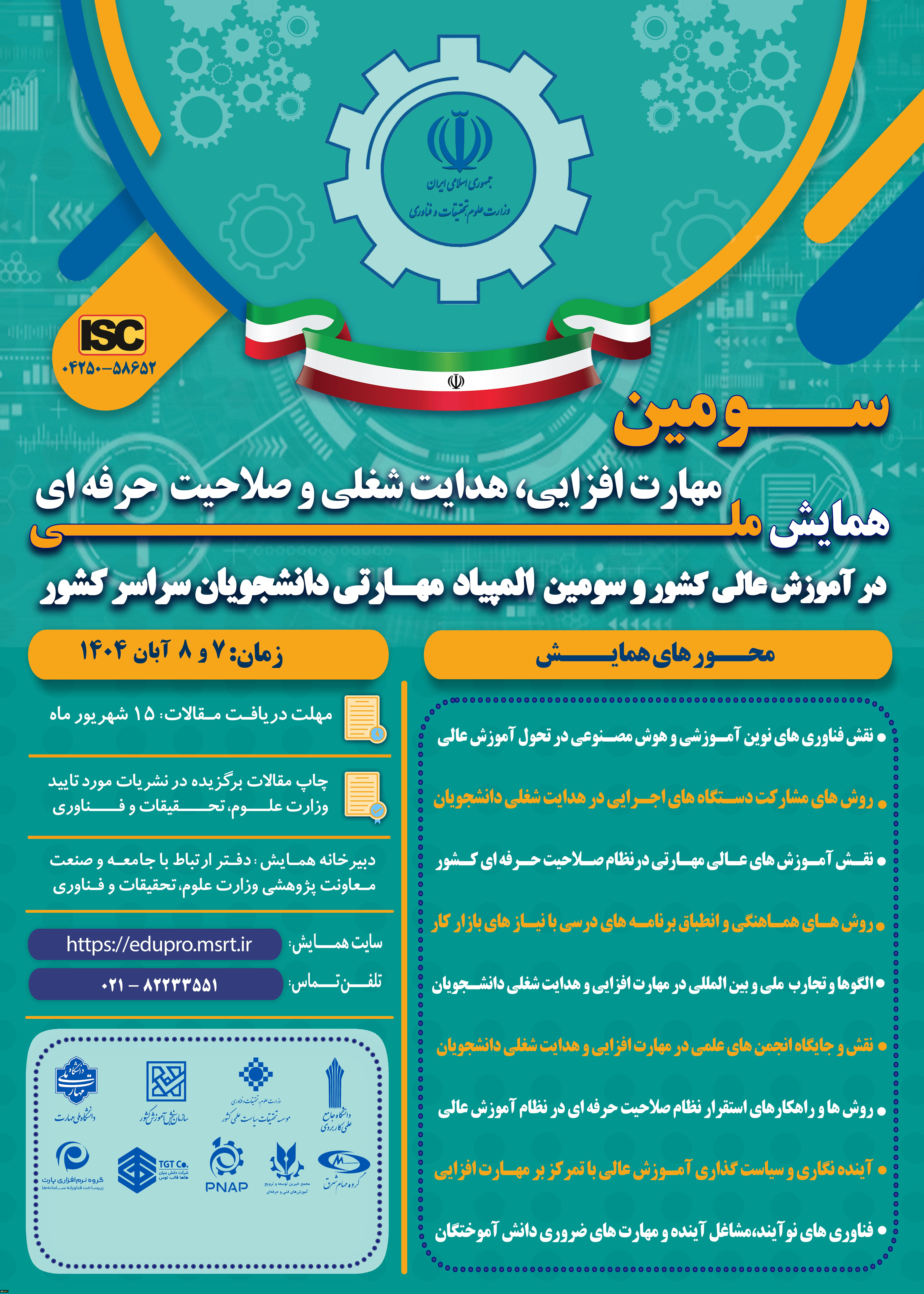 امتیاز دهید : سومین همایش ملی مهارت افزایی، هدایت شغلی و صلاحیت حرفهای در آموزش عالی کشور و المپیاد مهارتی دانشجویان سراسر کشور 2 دوشنبه 3 شهریور 1404 ساعت 8:35