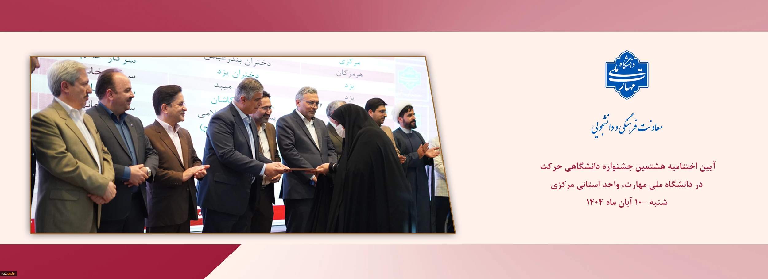 امتیاز دهید : آیین اختتامیه هشتمین جشنواره دانشگاهی حرکت در دانشگاه ملی مهارت، واحد استانی مرکزی برگزار شد 2 یکشنبه 11 آبان 1404 ساعت 13:37