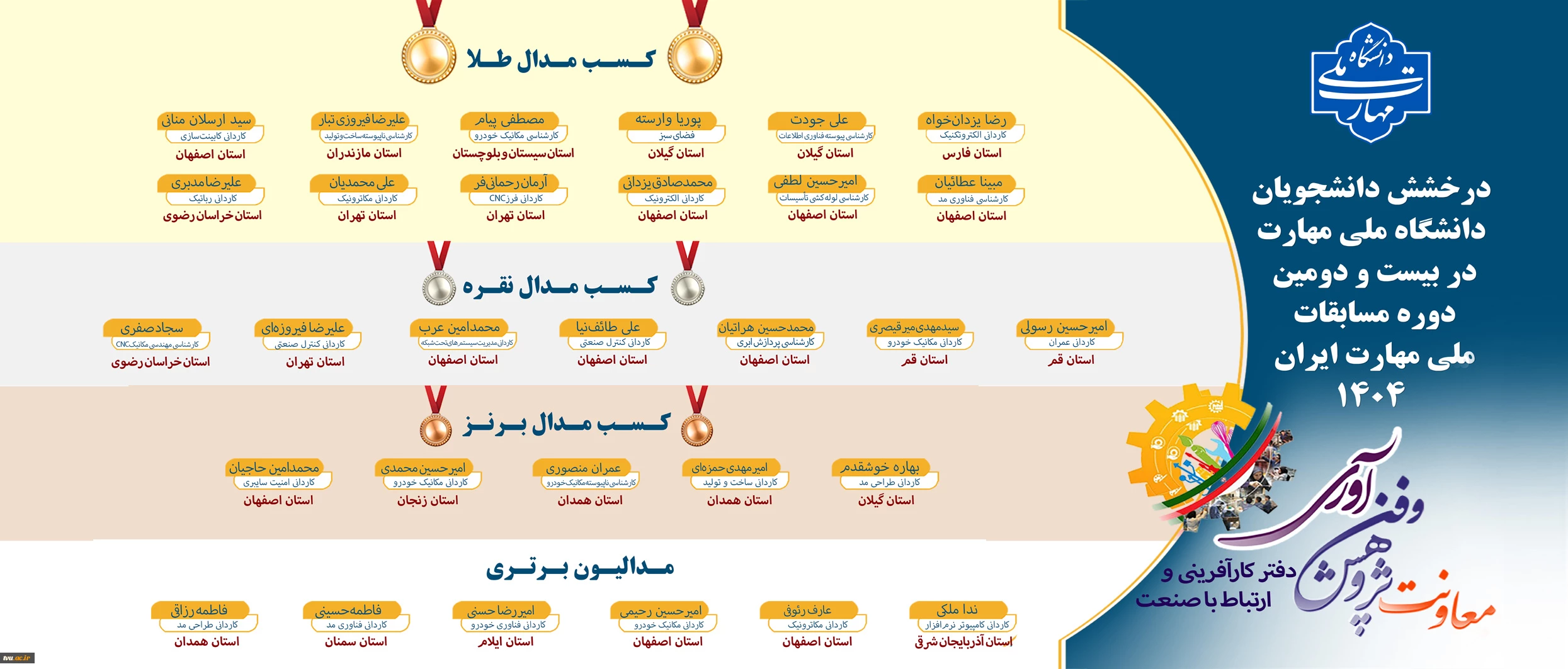 امتیاز دهید : درخشش دانشجویان دانشگاه ملی مهارت در بیست و دومین مسابقات ملی مهارت ایران 1404 2 چهارشنبه 14 آبان 1404 ساعت 7:55