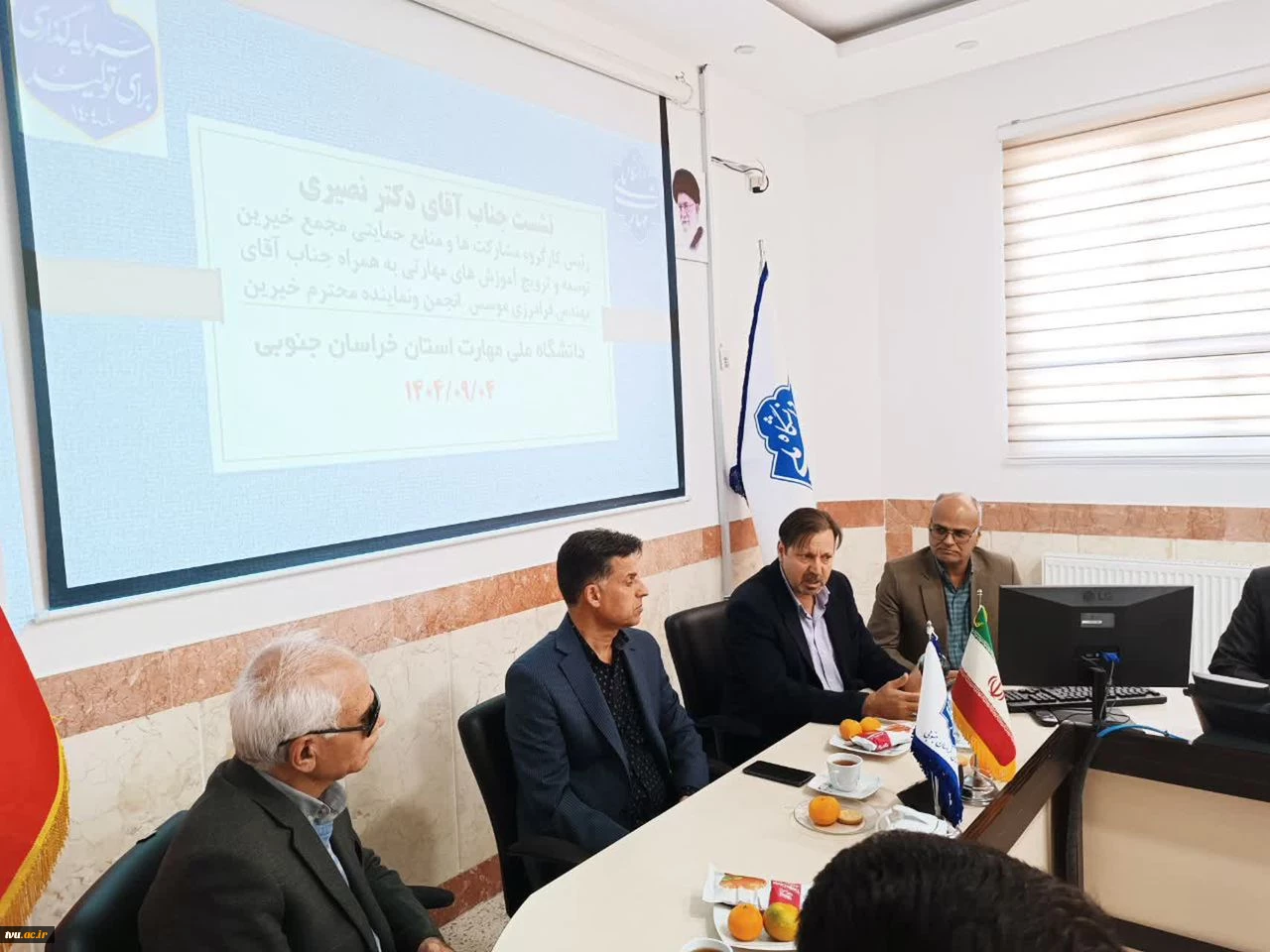 امتیاز دهید : حضور آقای خالدی در نشست مشترک دانشگاه ملی مهارت استان خراسان جنوبی با رئیس کارگروه مشارکتها و منابع حمایتی مجمع خیرین توسعه و ترویج آموزشهای مهارتی و موسس انجمن و نماینده خیرین 3 چهارشنبه 5 آذر 1404 ساعت 14:43