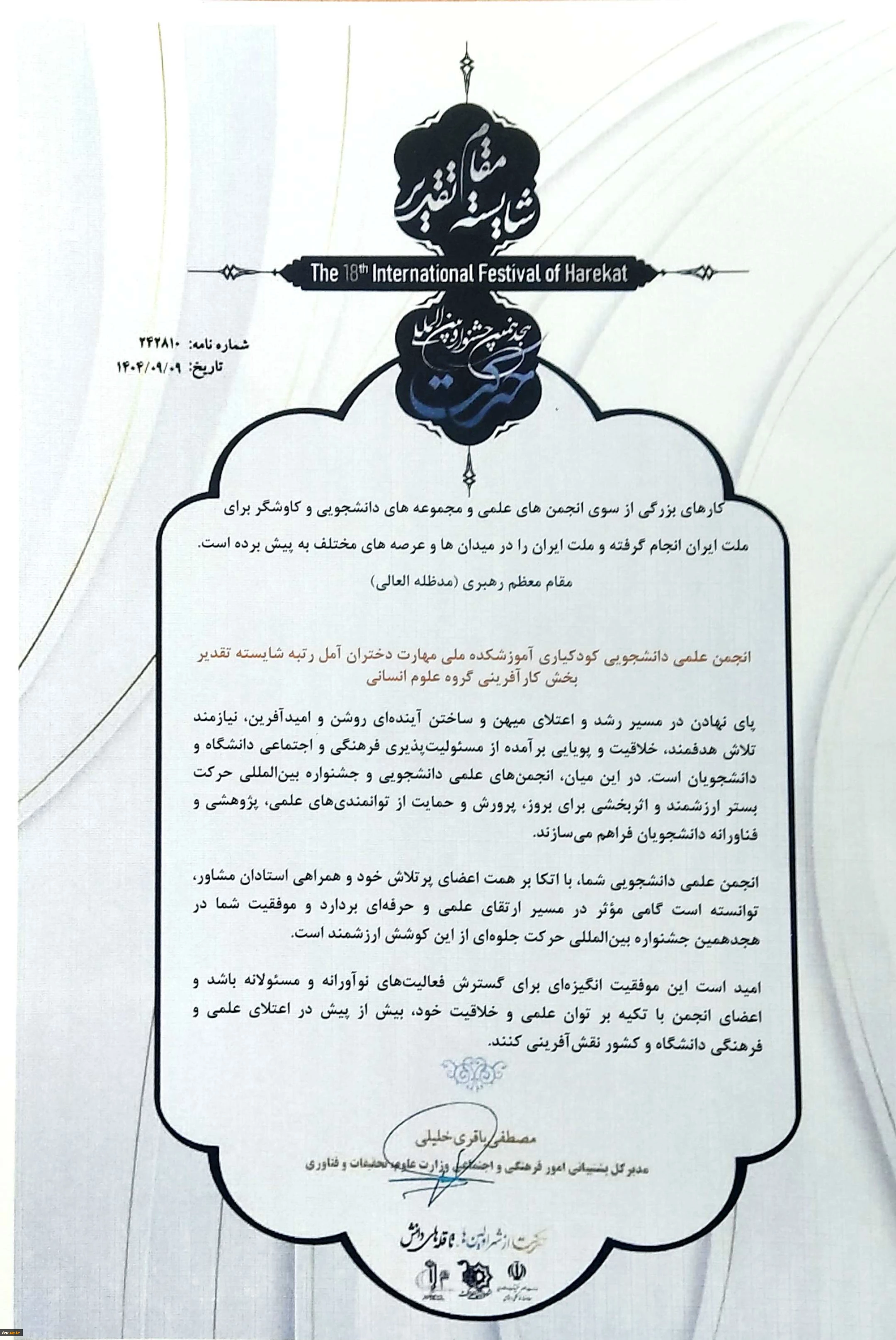 امتیاز دهید : نسیم امید – روز نخست / ویژه روز دانشجو افتخارآفرینی انجمنهای علمی دانشجویی دانشگاه ملی مهارت در هجدهمین جشنواره بین المللی حرکت وزارت علوم، تحقیقات و فناوری 10 شنبه 15 آذر 1404 ساعت 17:54