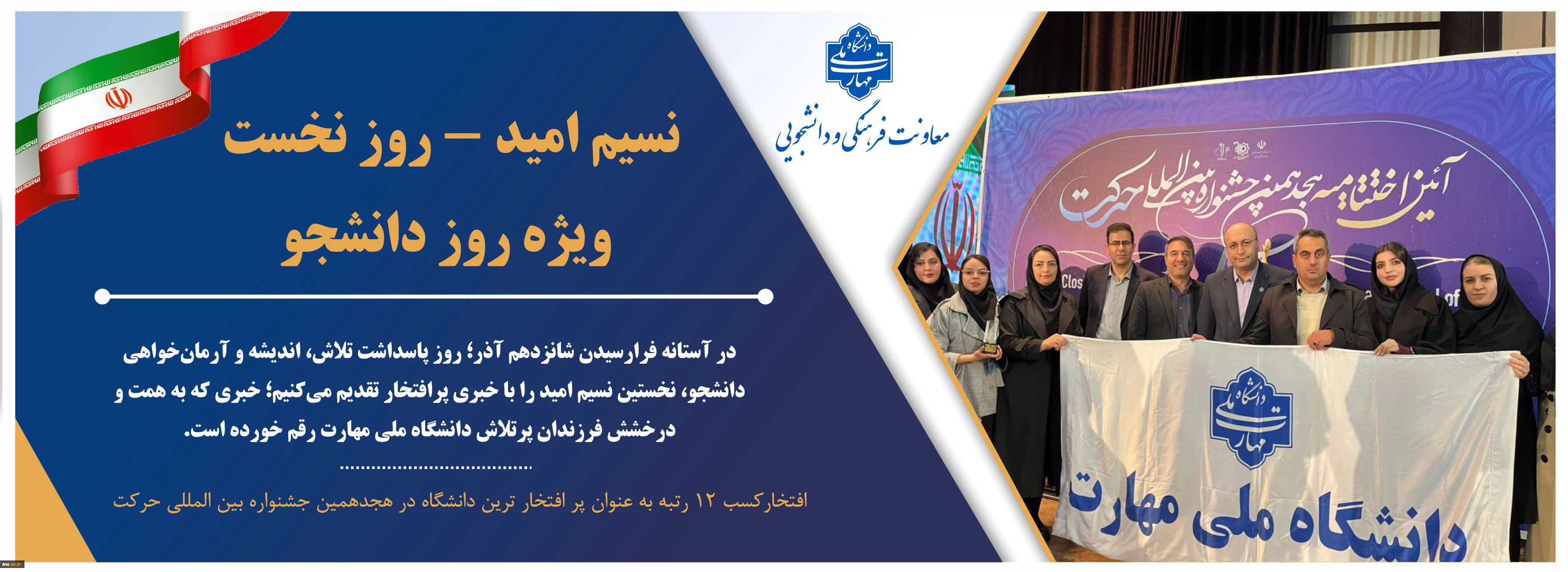 نسیم امید – روز نخست / ویژه روز دانشجو افتخارآفرینی انجمن‌های علمی دانشجویی دانشگاه ملی مهارت در هجدهمین جشنواره بین المللی حرکت وزارت علوم، تحقیقات و فناوری 2