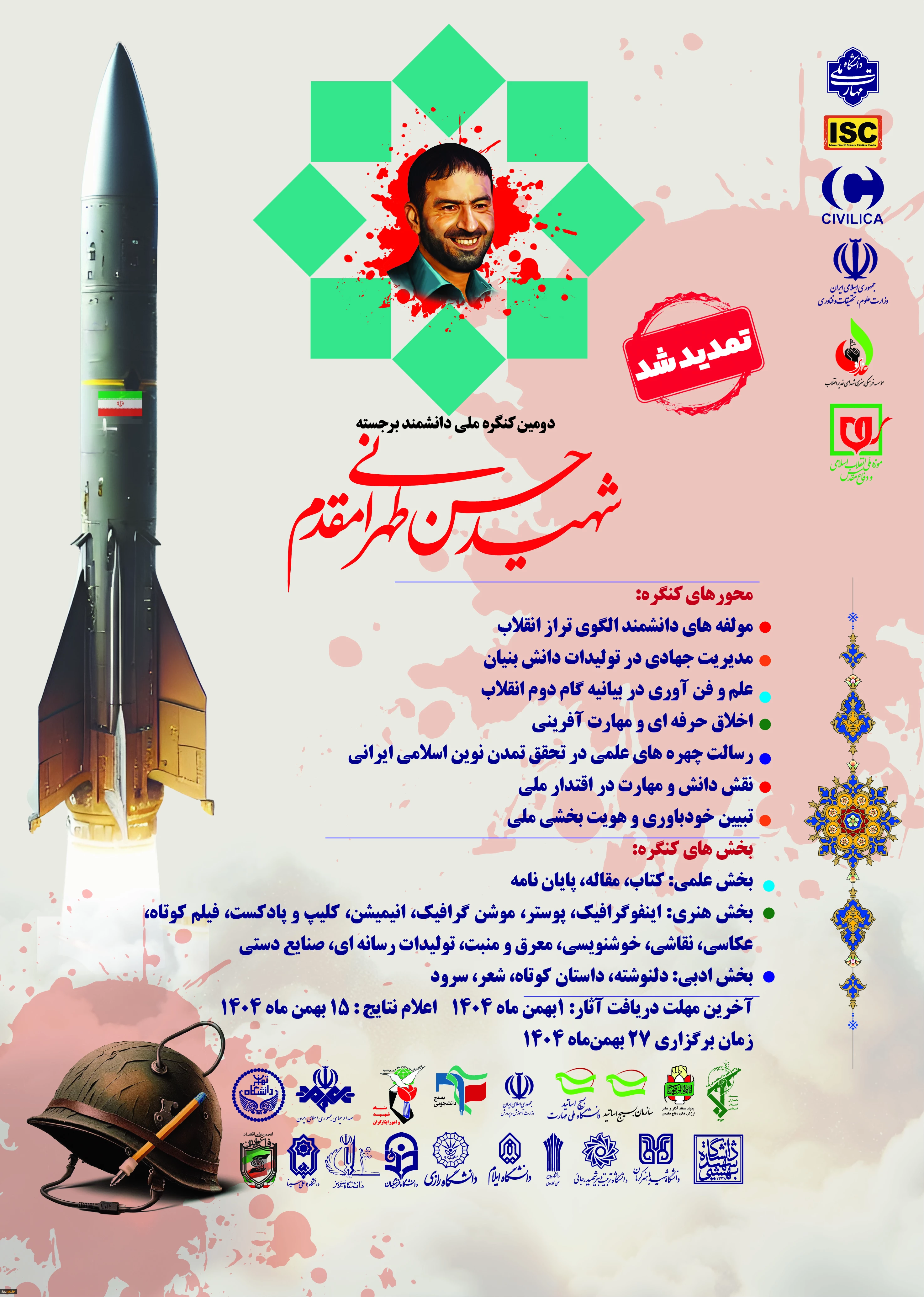 امتیاز دهید : فراخوان ارسال آثار به دومین کنگره بین المللی دانشمند برجسته شهید حسن طهرانی مقدم 2 شنبه 22 آذر 1404 ساعت 7:33