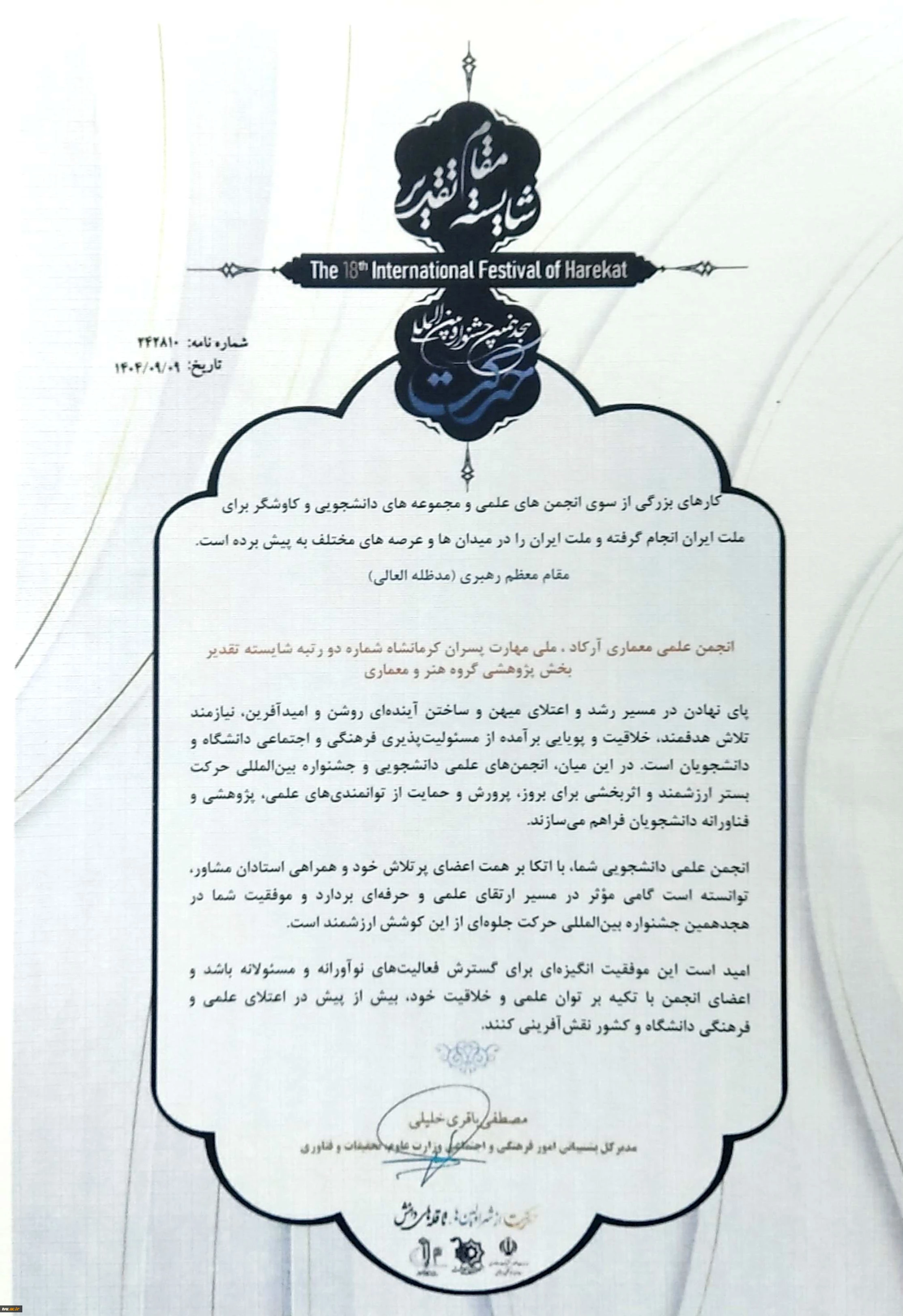 امتیاز دهید : افتخارآفرینی انجمنهای علمی دانشجویی دانشگاه ملی مهارت در هجدهمین جشنواره بین المللی حرکت وزارت علوم، تحقیقات و فناوری 16 شنبه 22 آذر 1404 ساعت 12:40