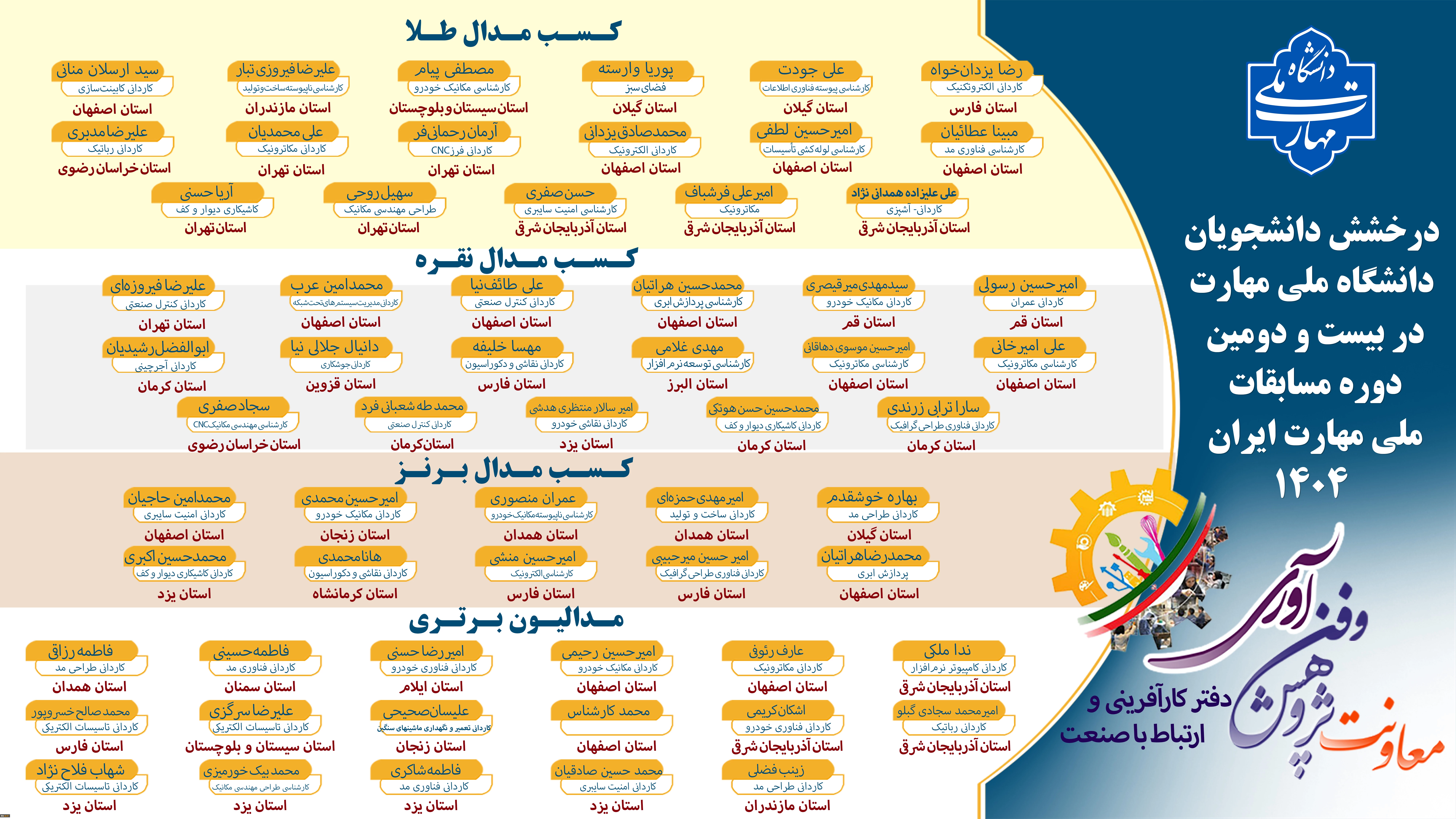 امتیاز دهید : درخشش دانشجویان دانشگاه ملی مهارت در بیست و دومین مسابقات ملی مهارت ایران 1404 2 پنجشنبه 27 آذر 1404 ساعت 12:32