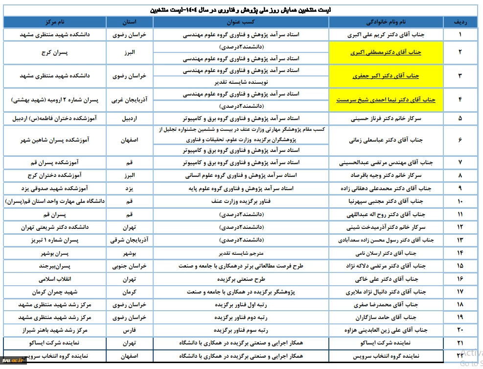 با حضور سرپرست معاونت پژوهشی وزارت علوم، تحقیقات و فناوری و رئیس دانشگاه ملی مهارت صورت گرفت؛ تجلیل از سرآمدان پژوهش و فناوری دانشگاه ملی مهارت در همایش گرامی‌داشت هفته ملی پژوهش و فناوری 5