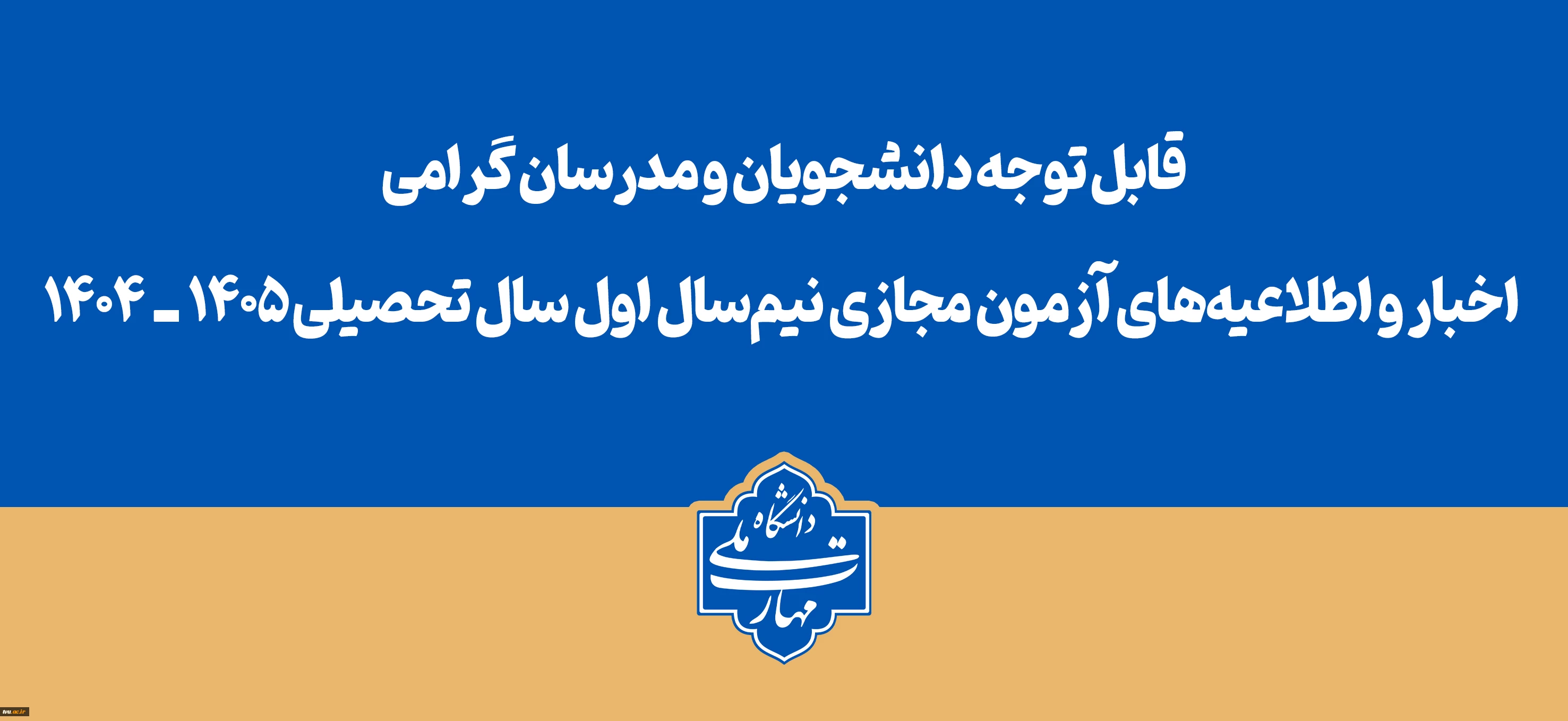 امتیاز دهید : قابل توجه دانشجویان و مدرسان گرامی اخبار و اطلاعیههای آزمون مجازی نیمسال اول سال تحصیلی ۱۴۰۵ـ۱۴۰۴ 2 شنبه 4 بهمن 1404 ساعت 16:05