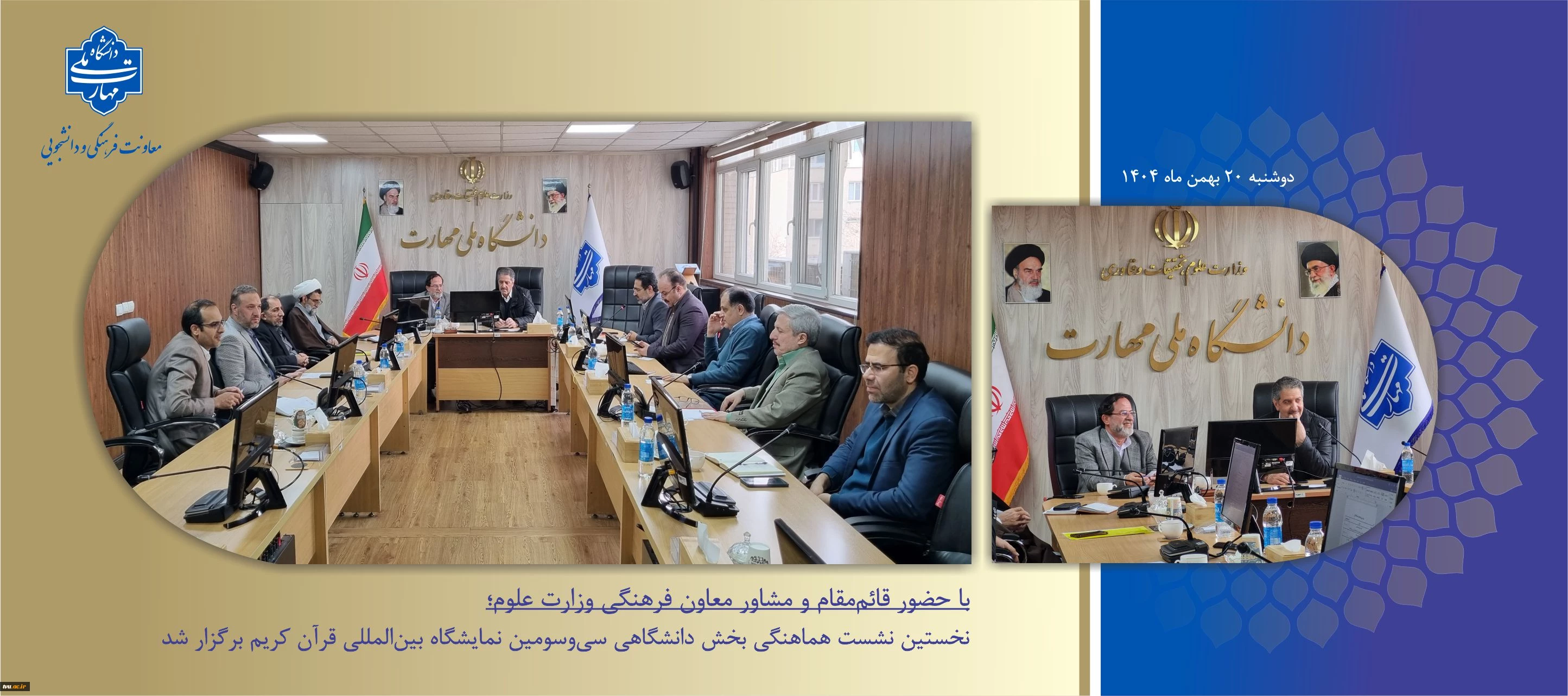امتیاز دهید : با حضور قائممقام و مشاور معاون فرهنگی وزارت علوم؛ نخستین نشست هماهنگی بخش دانشگاهی سیوسومین نمایشگاه بینالمللی قرآن کریم برگزار شد 2 سهشنبه 21 بهمن 1404 ساعت 8:56
